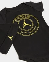 Bringen Sie sie dazu, ihre Unterstützung in diesem Paris Saint Germain 3-teiligen Bootie-Set für Kleinkinder aus Jordanien zu zeigen. In einer schwarzen Farbgebung ist dieses Set aus superweichem Baumwollstoff hergestellt. Es verfügt über einen Kurzarm-Strampler mit Druckknöpfen zum einfachen An- und Ausziehen sowie eine passende Mütze und Schühchen. Mit dem legendären Jumpman-Logo ist dieses Set mit PSG-Wappen vollendet.