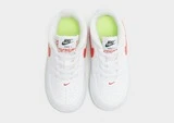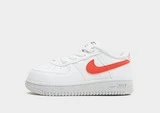 Lassen Sie Ihr Kleines frisch aussehen mit diesen Airforce 1 Crater Sneakern von Nike für Kleinkinder. Diese verkleinerten Sneaker in weißer Farbe haben ein glattes, aber strapazierfähiges Obermaterial aus Kunstleder für dauerhaften Tragekomfort. Sie verfügen über einen Schnürverschluss mit einem niedrig geschnittenen, gepolsterten Knöchelkragen für eine eng anliegende, stützende Passform und Perforationen an den Zehen für Luftzirkulation. Unter den Füßen befindet sich eine Schaumstoff-Zwischensohle, die weich und schwammig ist, um sie bequem zu halten, und eine Gummi-Außensohle für Traktion. Abgemeldet mit dem Swoosh an den Seitenwänden.
